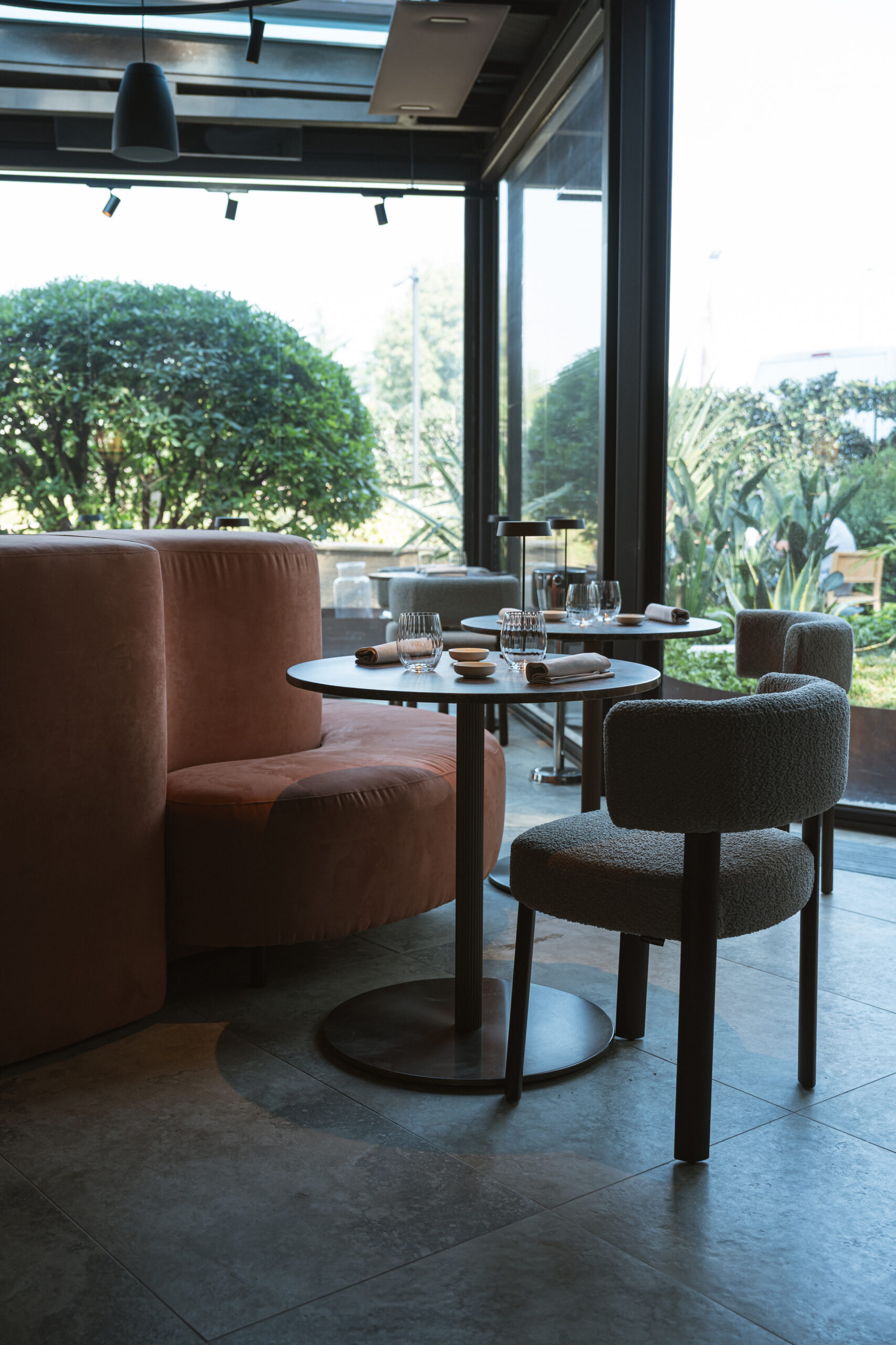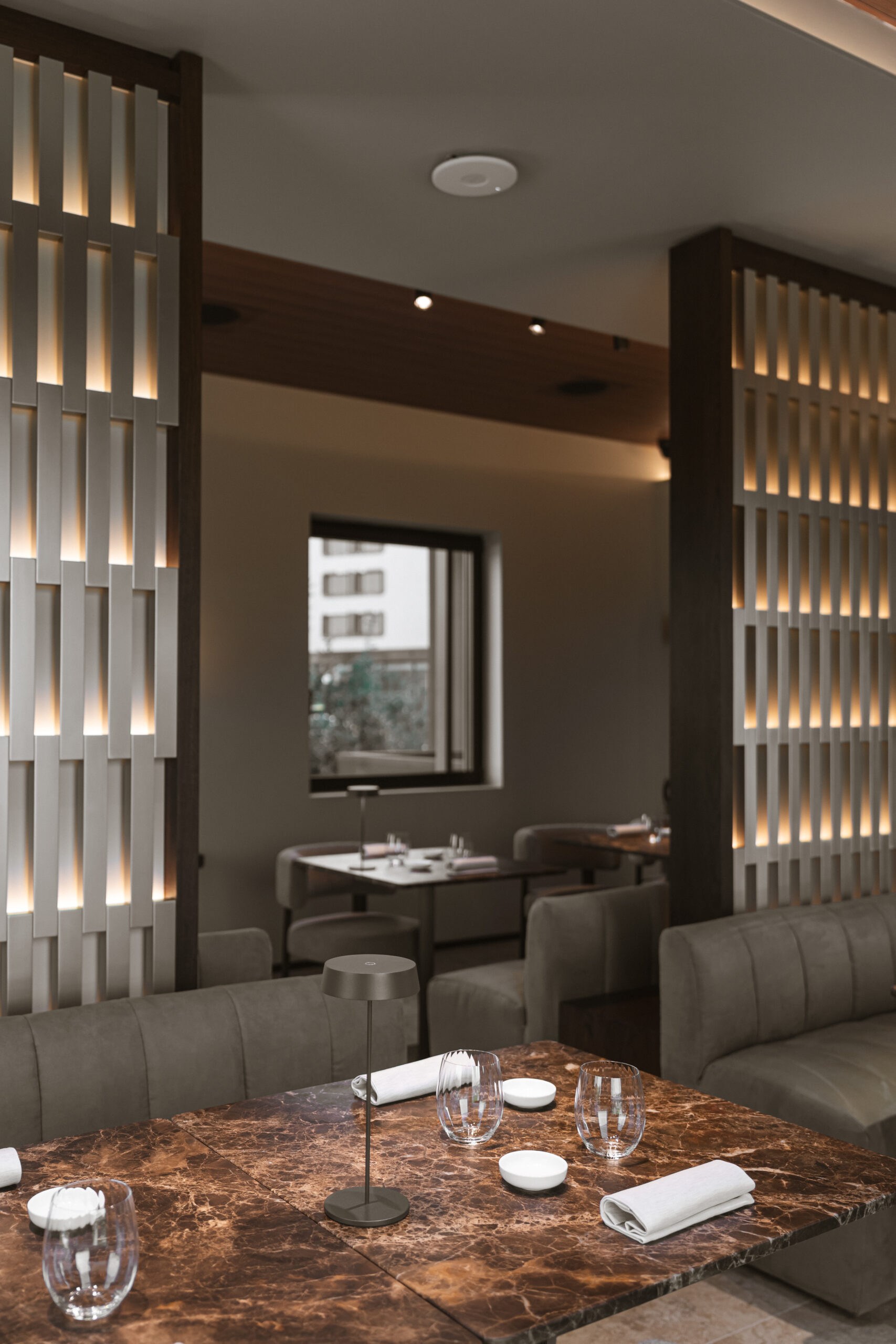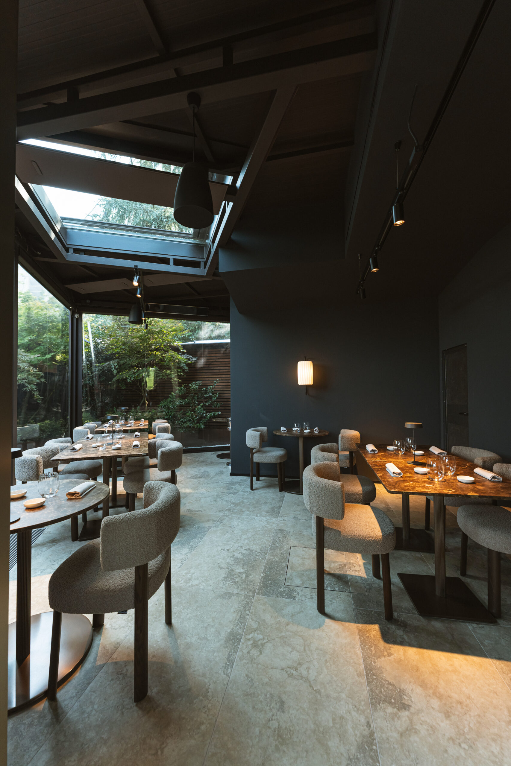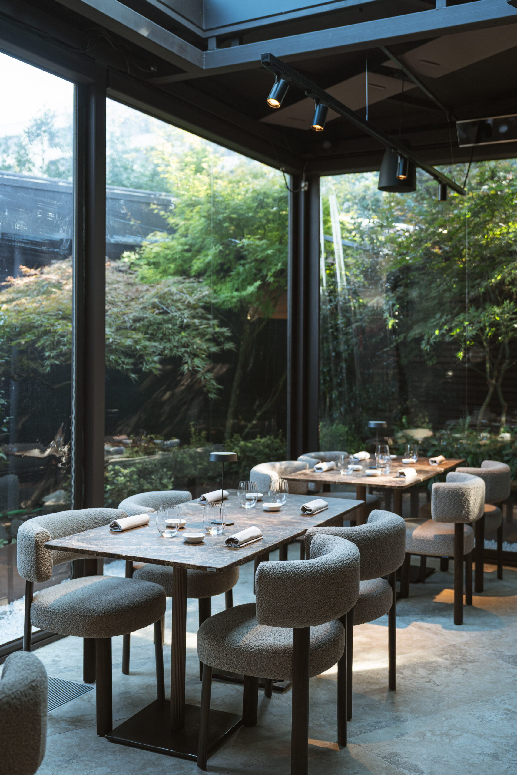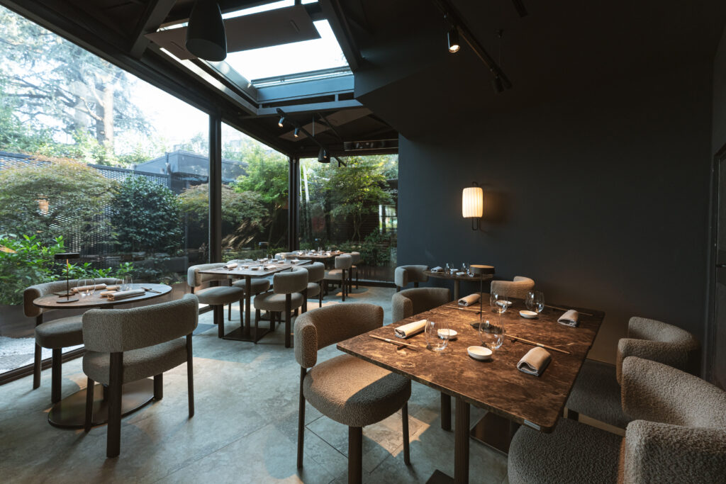 L’arredamento, che combina l’eleganza giapponese con il design milanese, crea un’atmosfera unica per pranzare all’aperto.