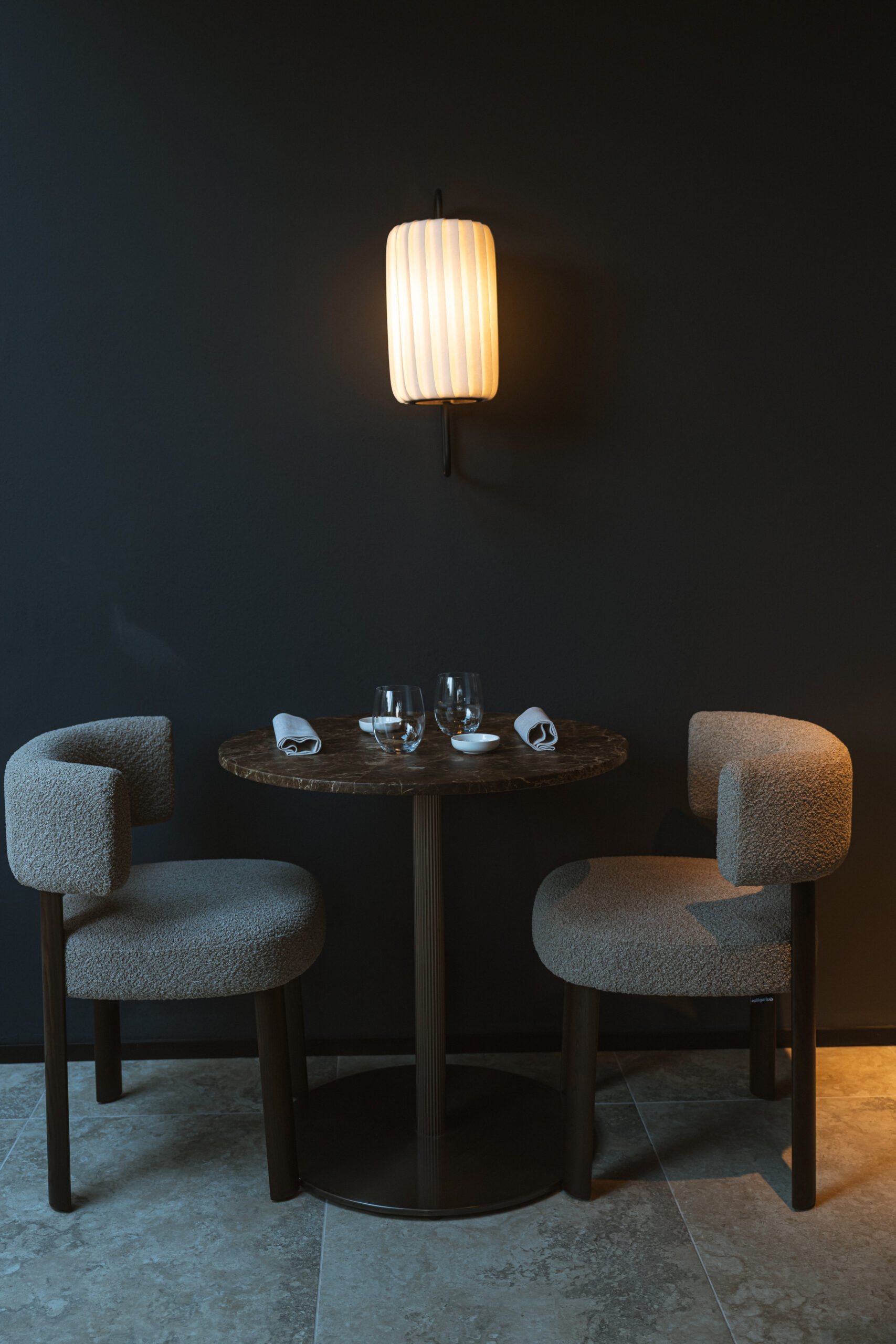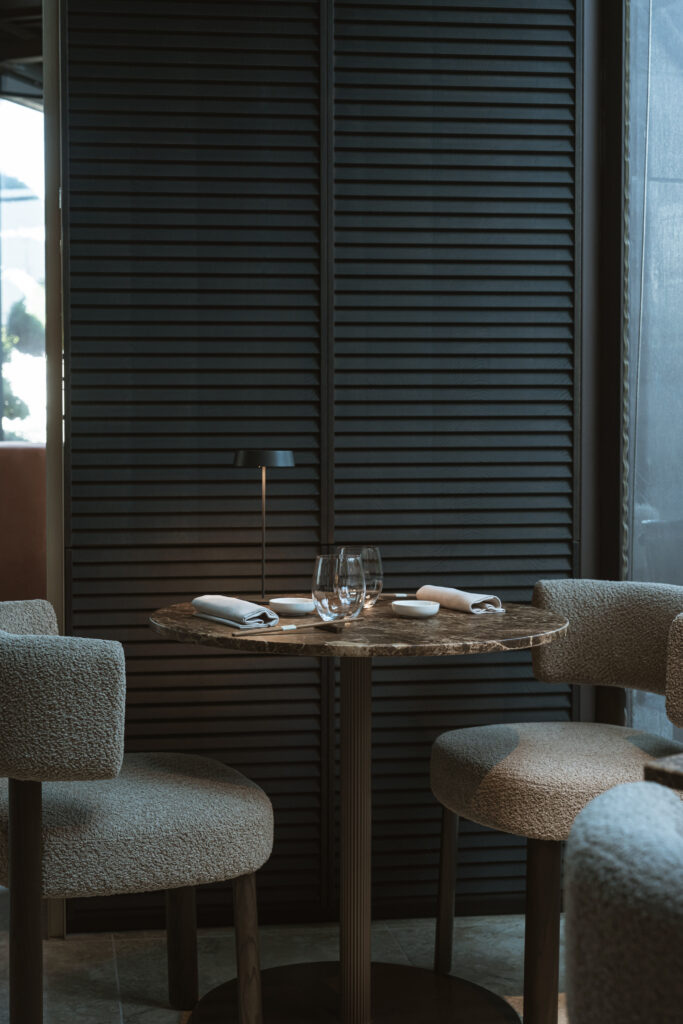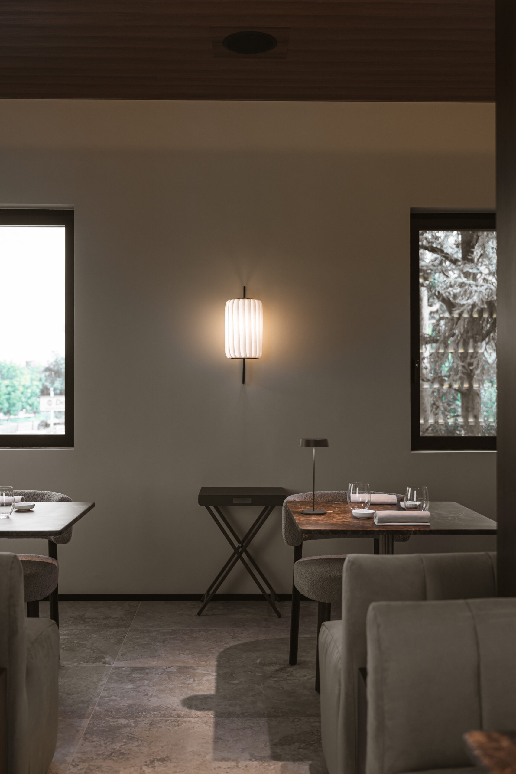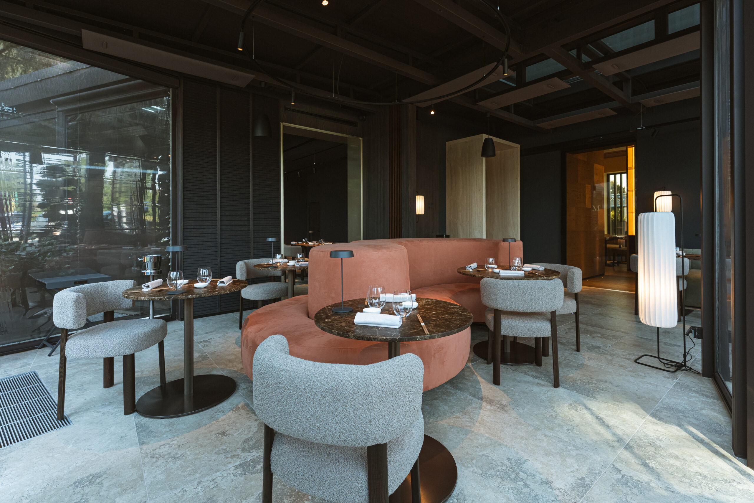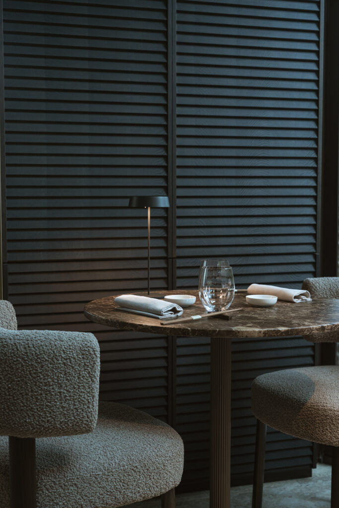 L’arredamento, che combina l’eleganza giapponese con il design milanese, crea un’atmosfera unica per pranzare all’aperto.