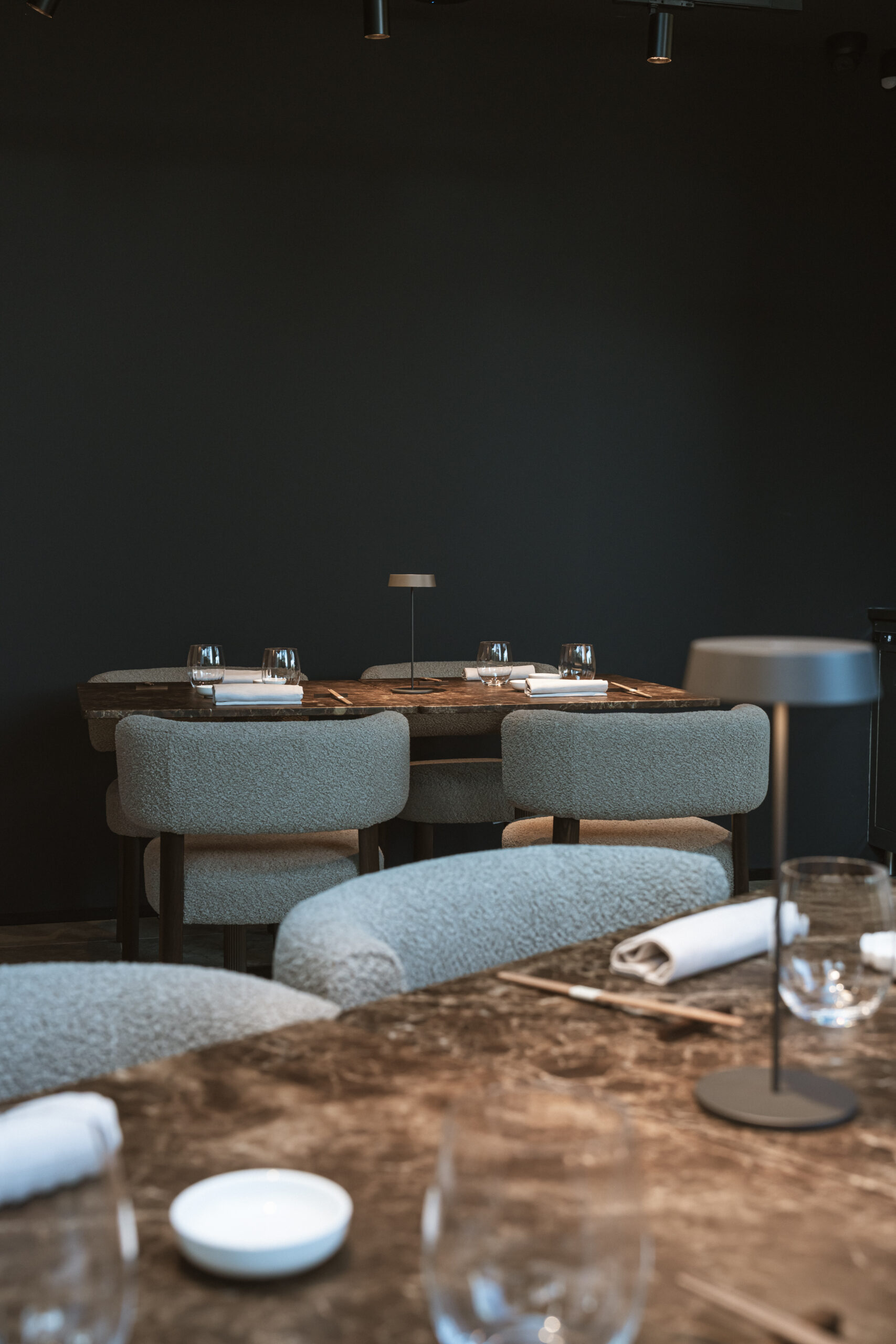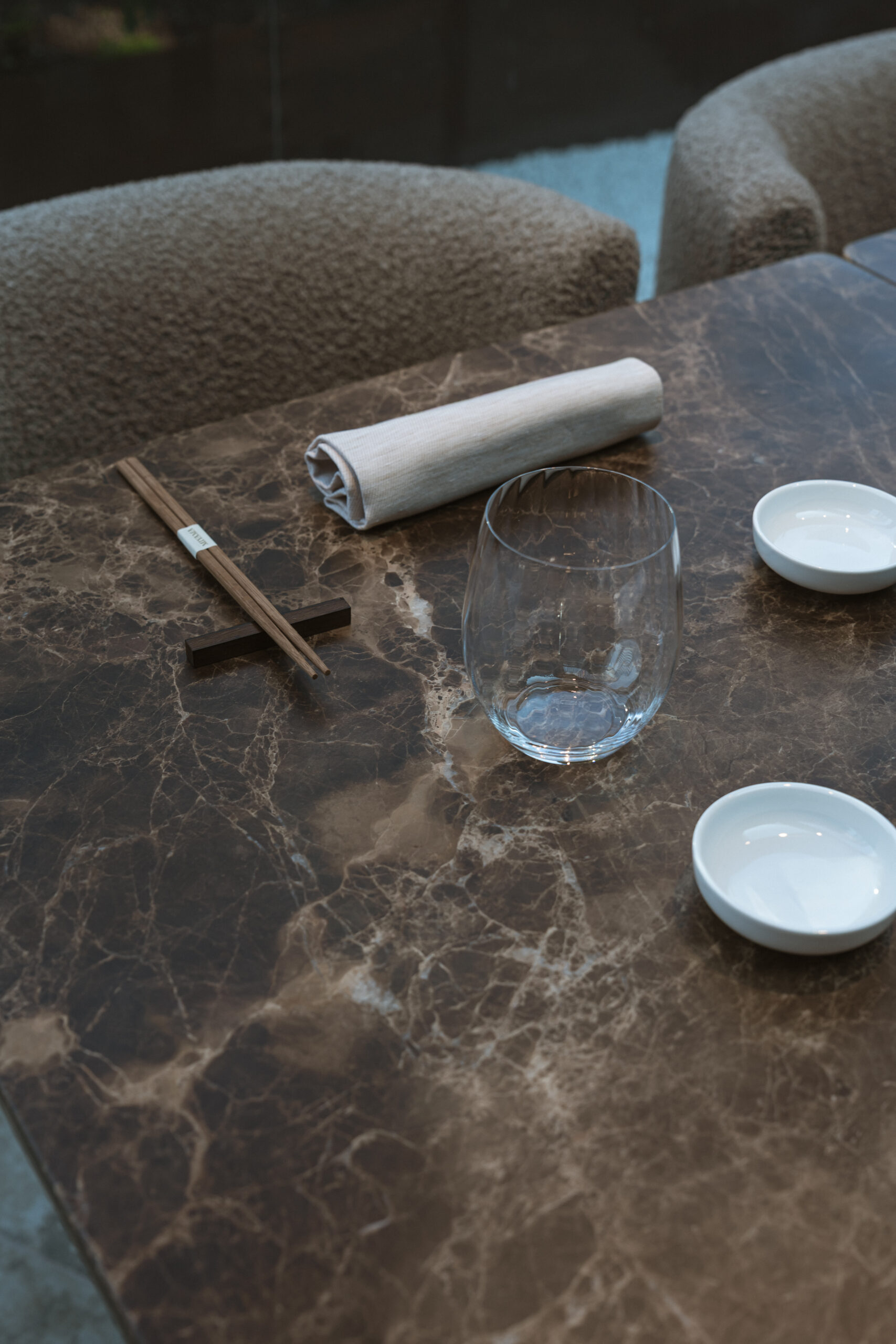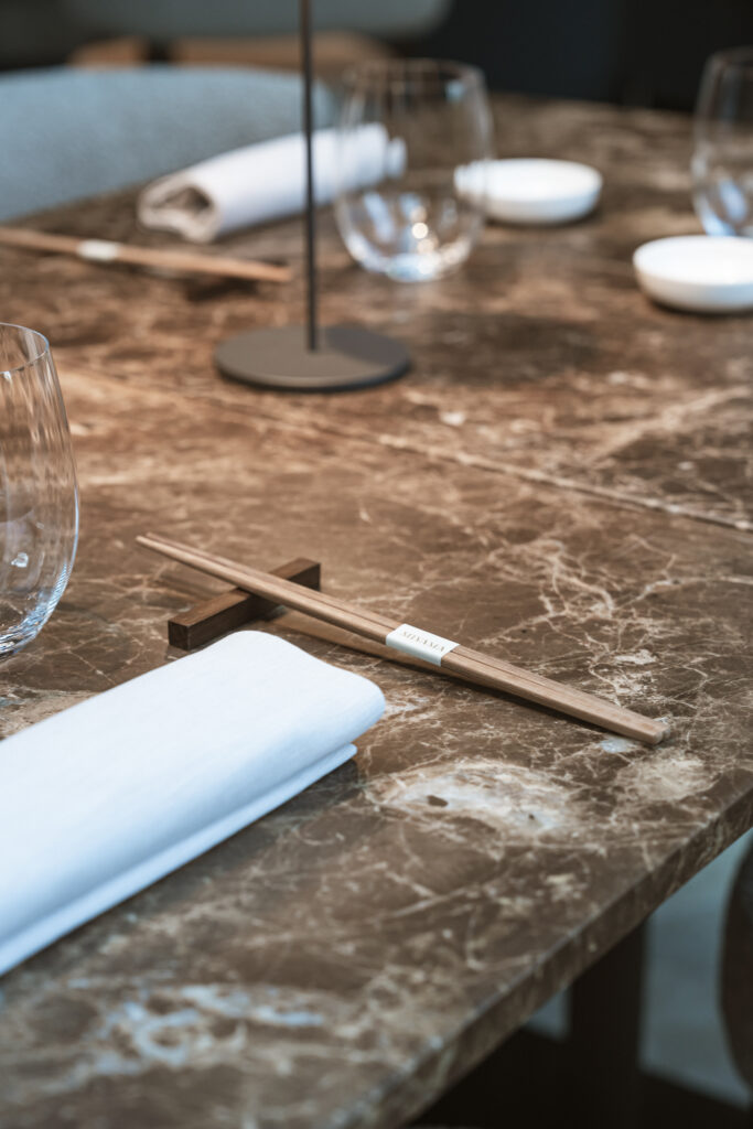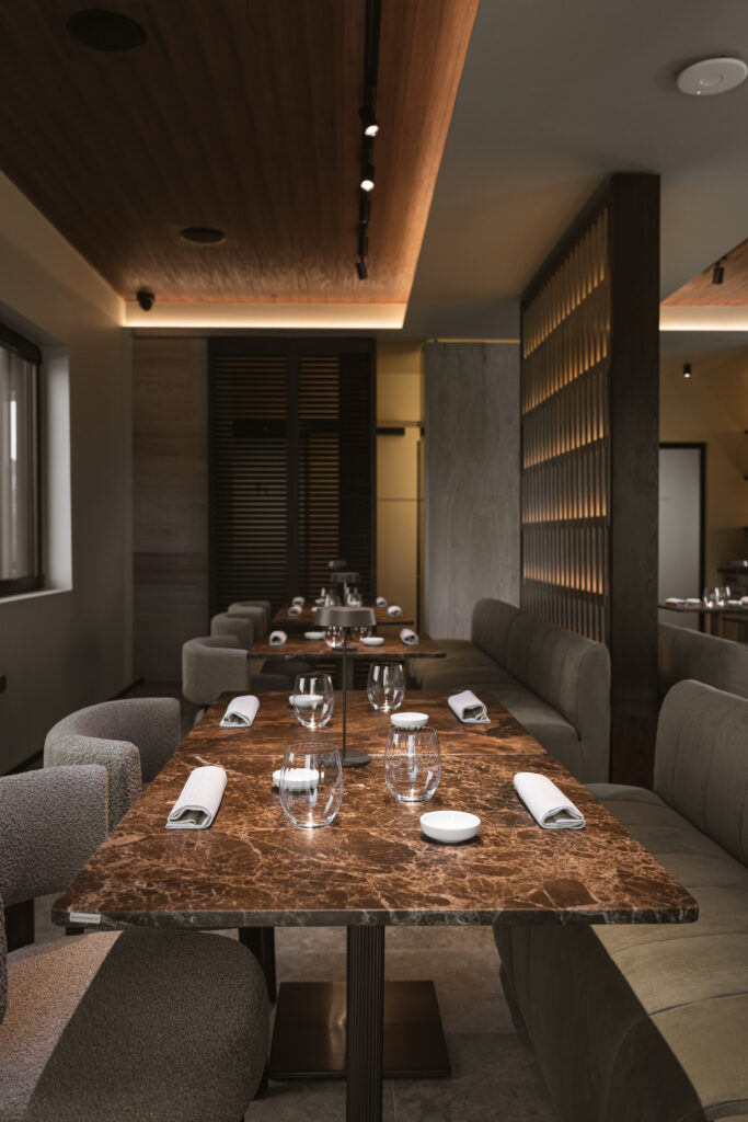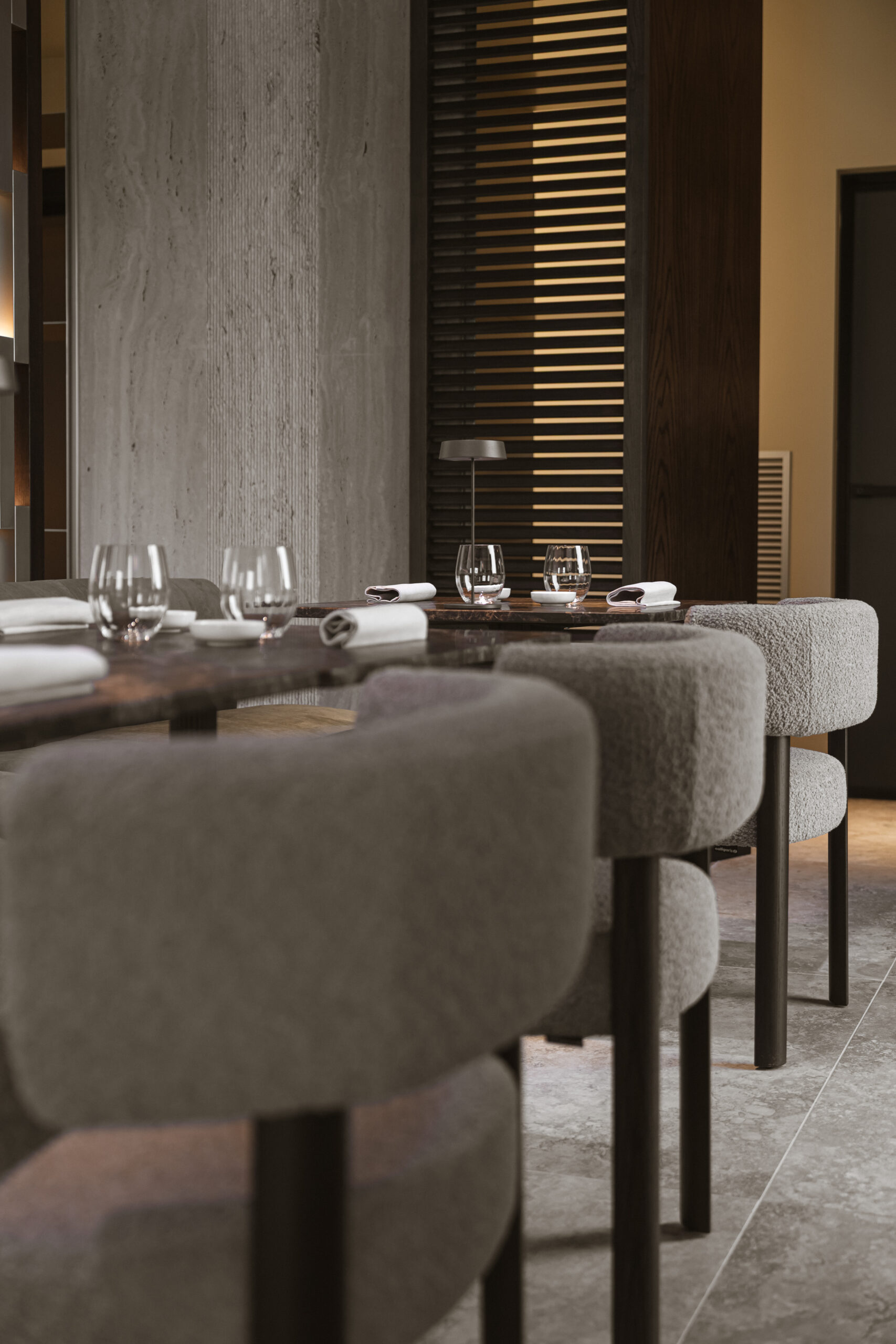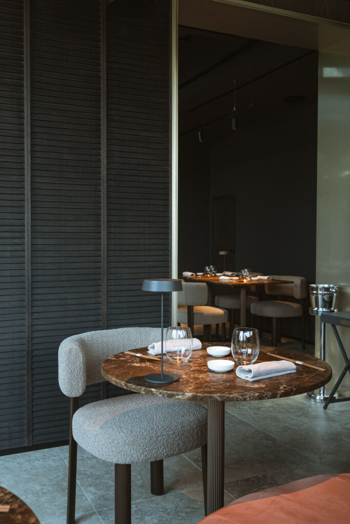 L’arredamento, che combina l’eleganza giapponese con il design milanese, crea un’atmosfera unica per pranzare all’aperto.
