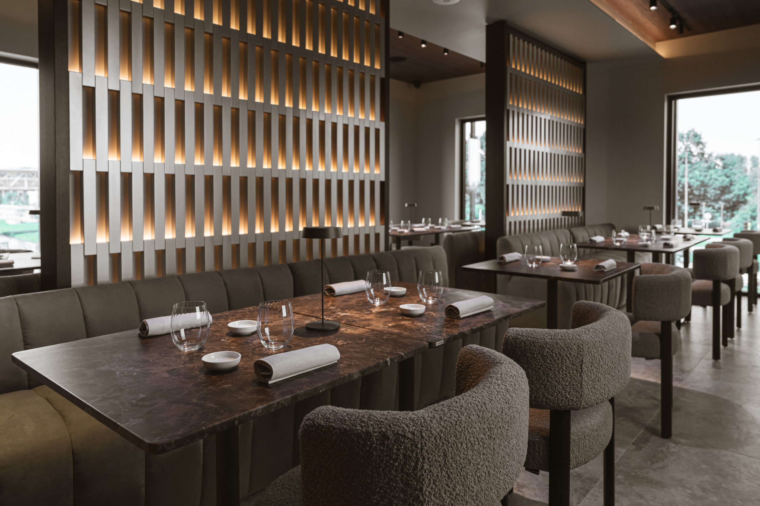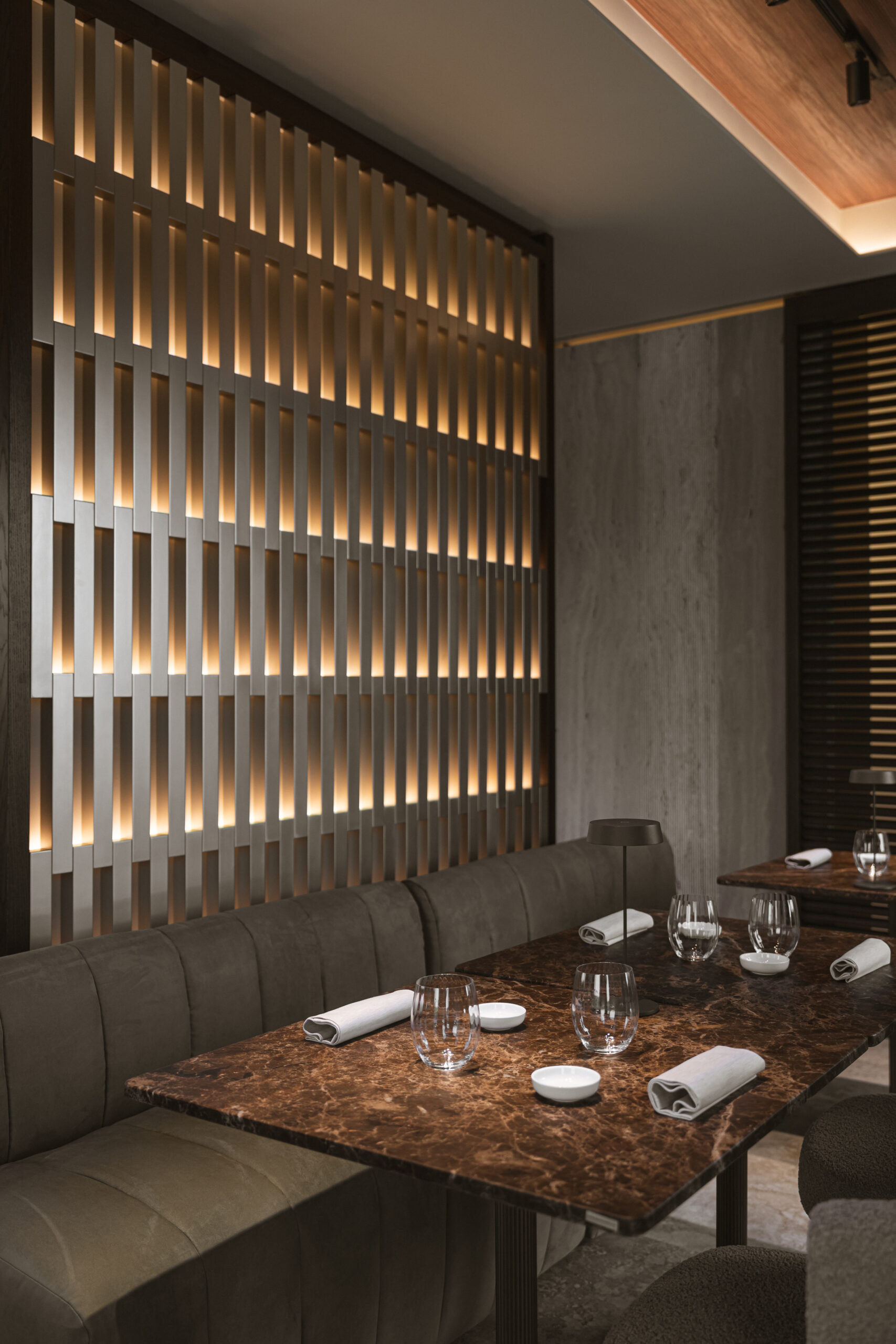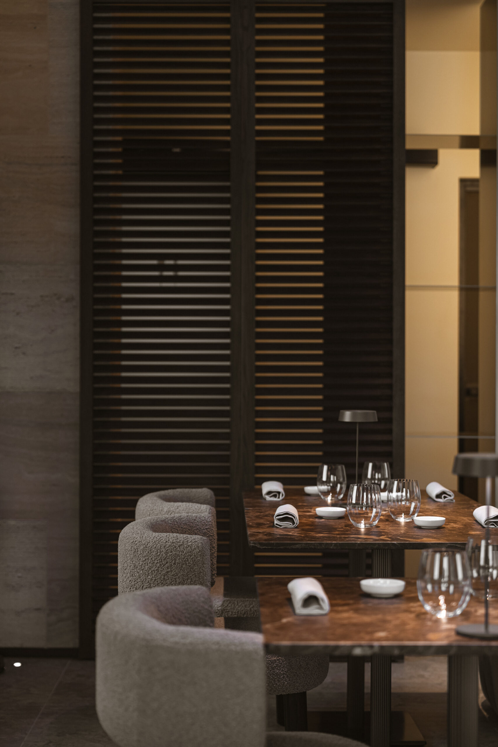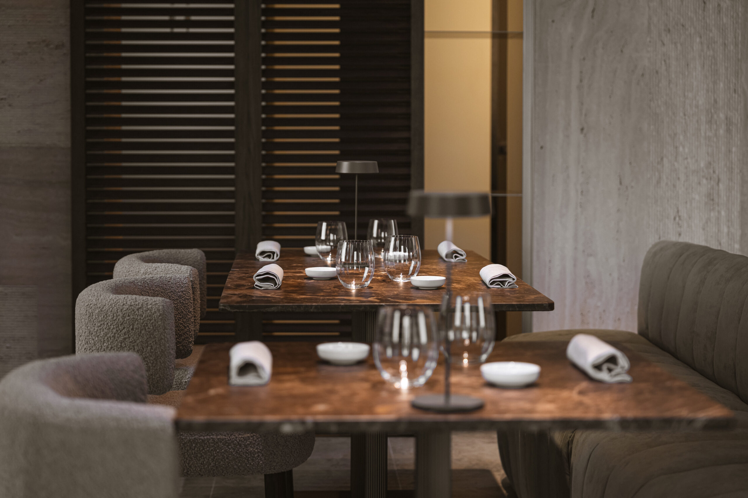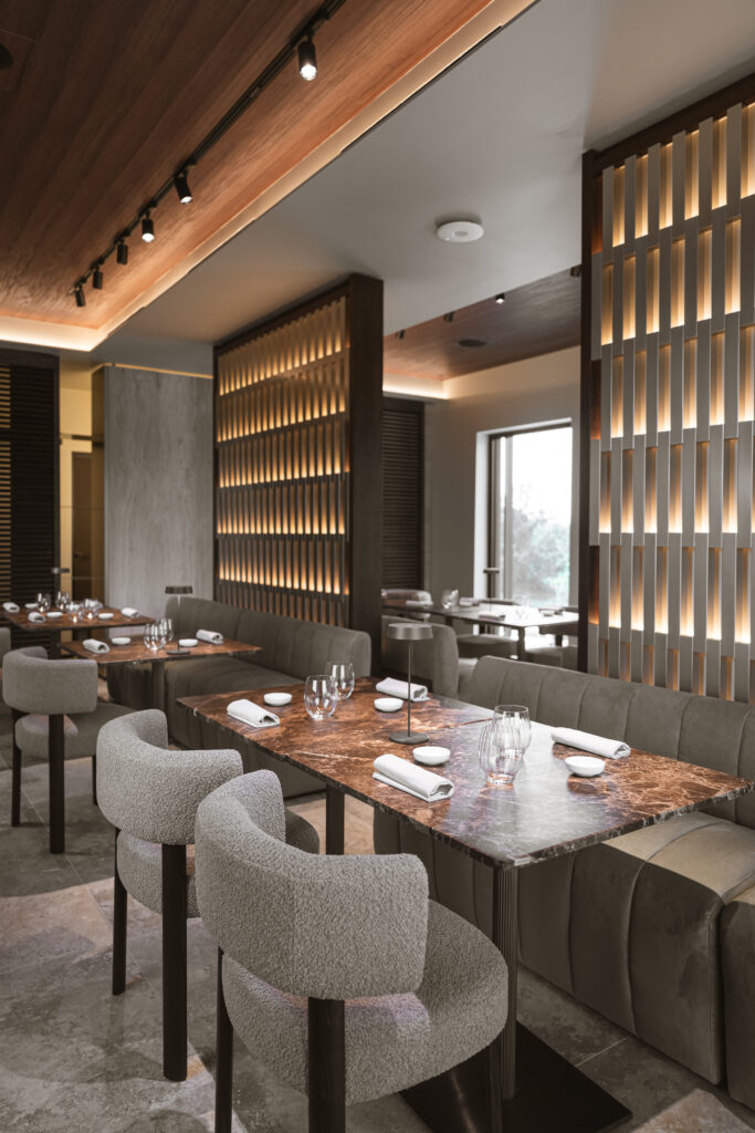 L’arredamento, che combina l’eleganza giapponese con il design milanese, crea un’atmosfera unica per pranzare all’aperto.